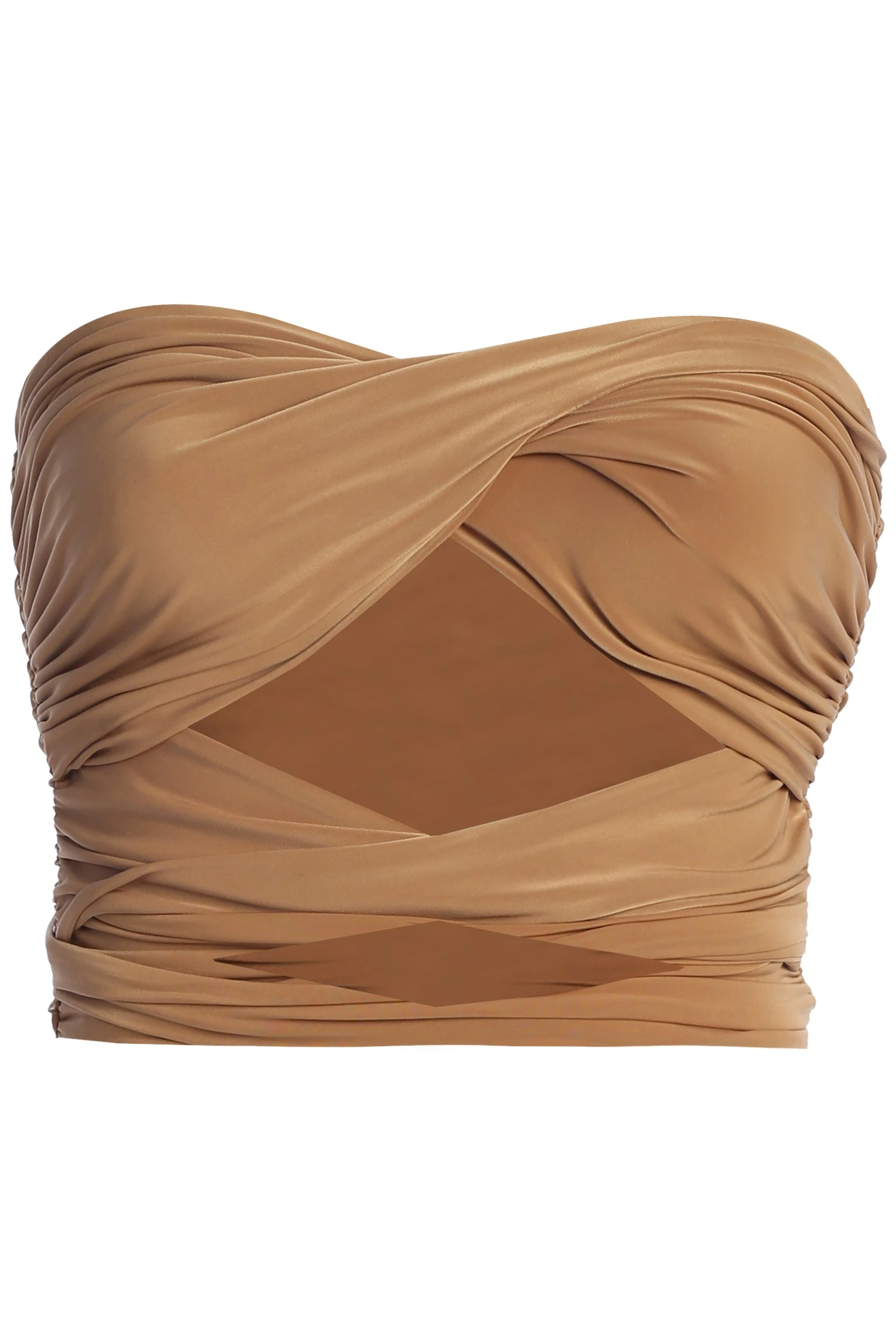There’s always something to celebrate when in the Almond New Heights Top. Crafted in our new luxurious slinky fabric, this one of a kind top features a sweetheart neckline with a stylish crossover design and alluring cutouts. Tie-back closure. Double-lined with stretch.
