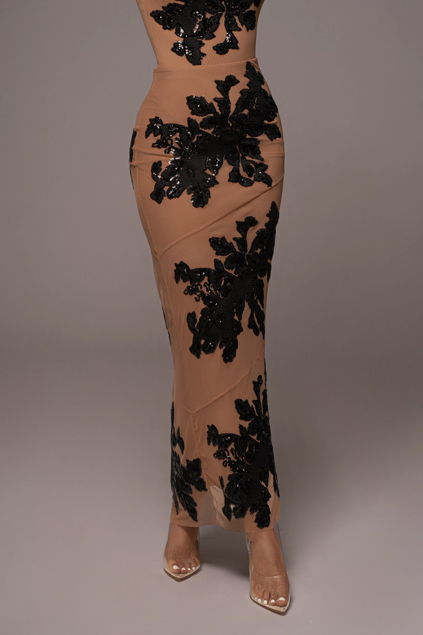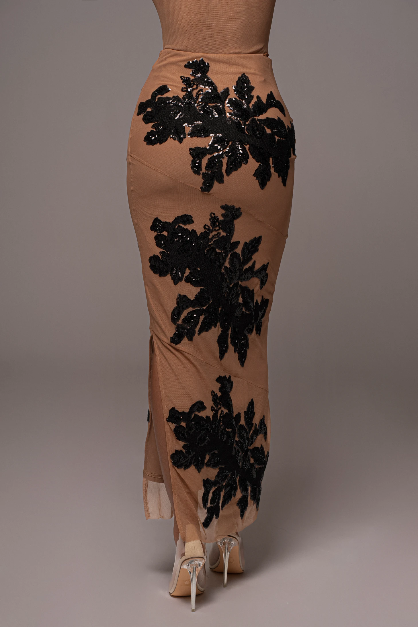 Embellishments are back in our Noir Edena Embroidered Midi Skirt. Our latest midi skirt is embroidered with overlays of lovely floral embellishments throughout. A side zipper closure and low slit on one side finish the look. Pair with our