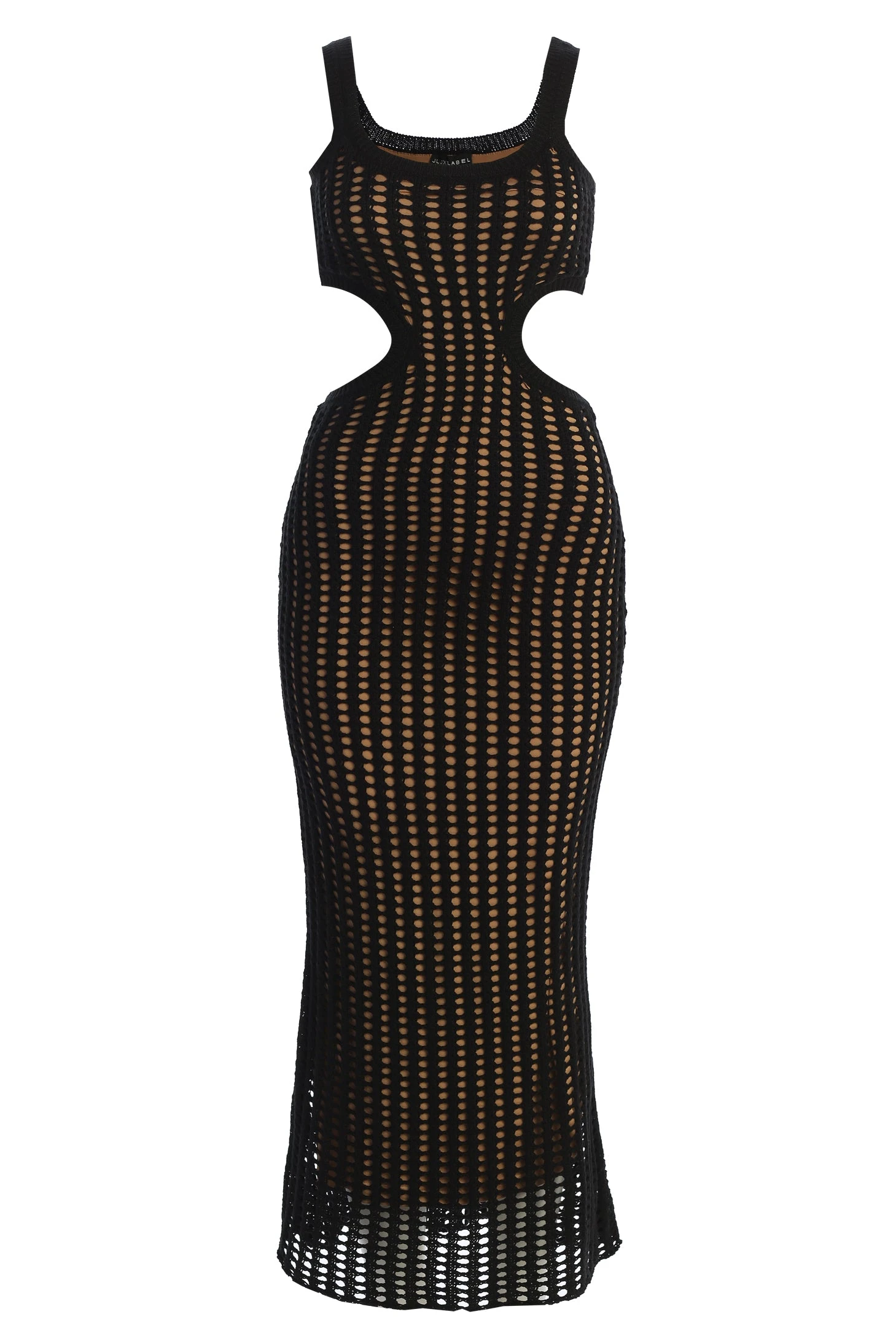 Our new Black Melrose Cutout Midi Dress is a staple you’ll never want to slip out of! Designed in soft crochet knit material, this breezy midi dress features a square neckline with tank shoulder straps, a back cutout, and a beige lined interior giving off a stylish nude illusion. Stretchy.