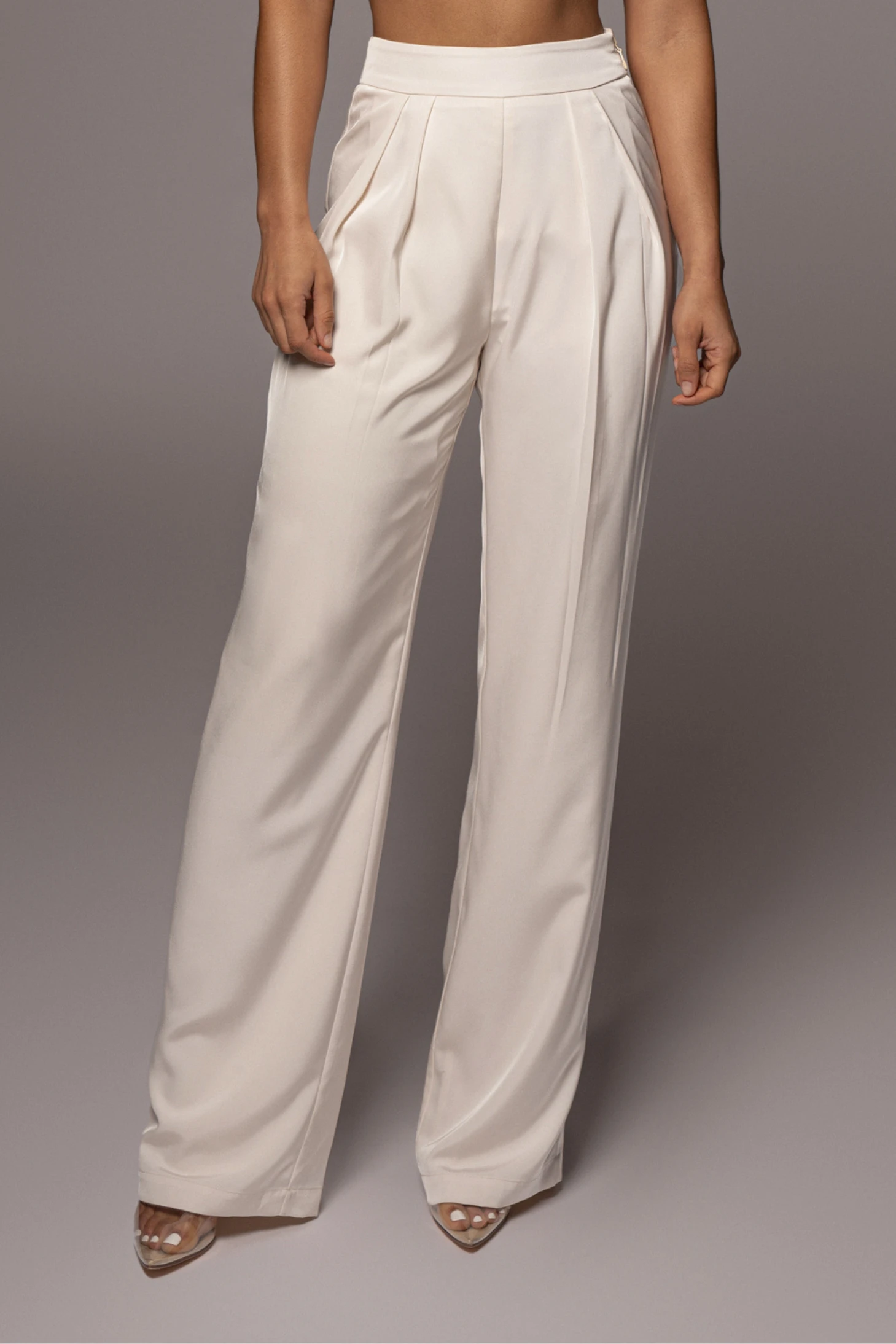 Our new Buttercream Candice Trousers provide polish and form! Featured in a lightweight fabric with satin like lining, these trousers come with a top waistband, pleat detailing, and straight leg hems. Complete with two back faux pockets and a side zipper closure. Coordinate the full look with ourÂ