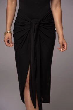 Our Noir Lost In Time Skirt delivers a mesmerizing view in lovely touches of sheer! Topped with an elastic waistband, this playful midi-length skirt features a side slit with stylish sheer panels at the waist bringing extra allure to your look. Stretchy.