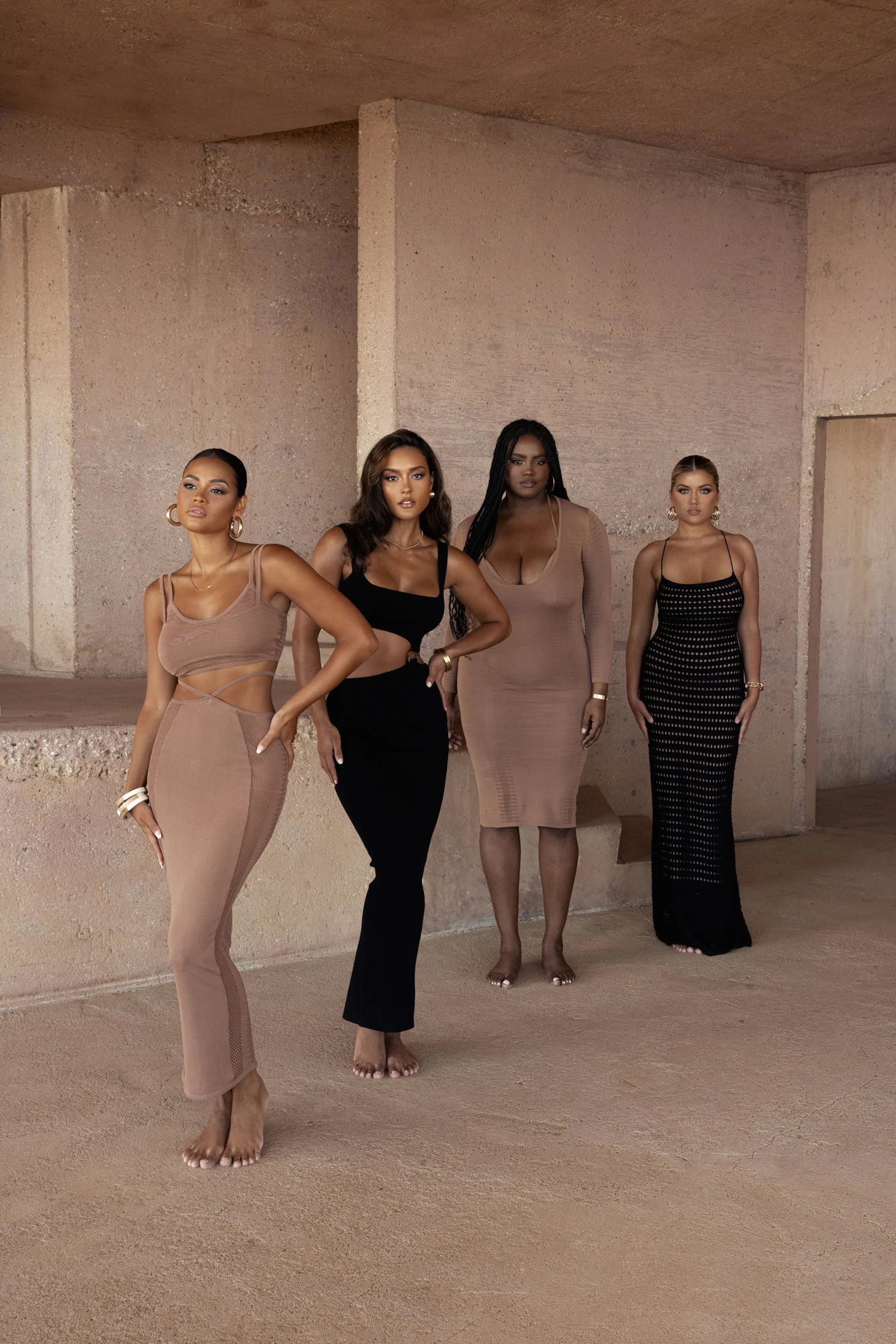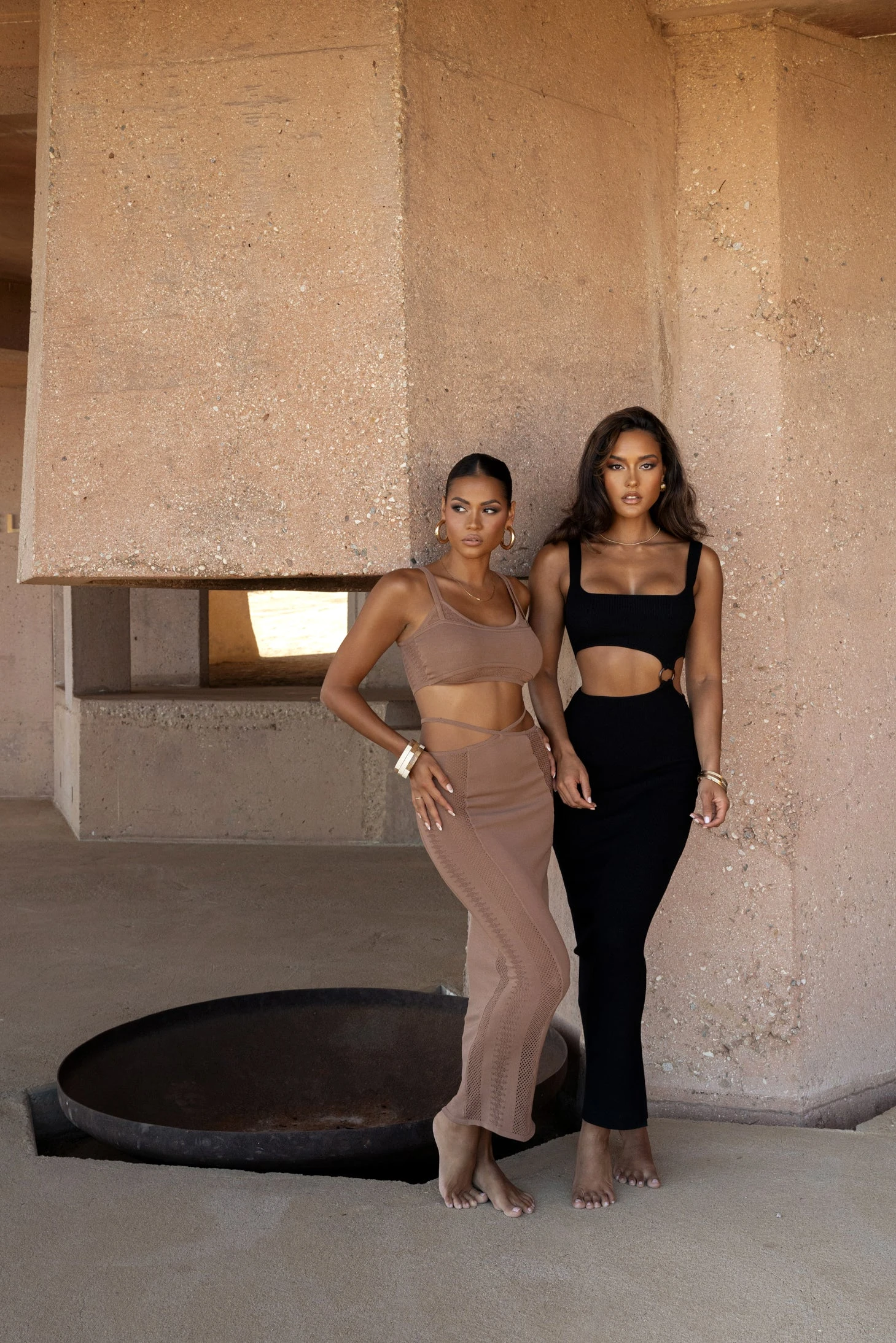 The Black Time After Time Dress is the definition of midsummer glamour! Showcasing a squared neckline with fixed shoulder straps, a trendy cut-out at the waist with tortoiseshell ring, and a center-back slit located at the lower hem. Designed in a ribbed knit fabric for a touch of texture. Stretchy.