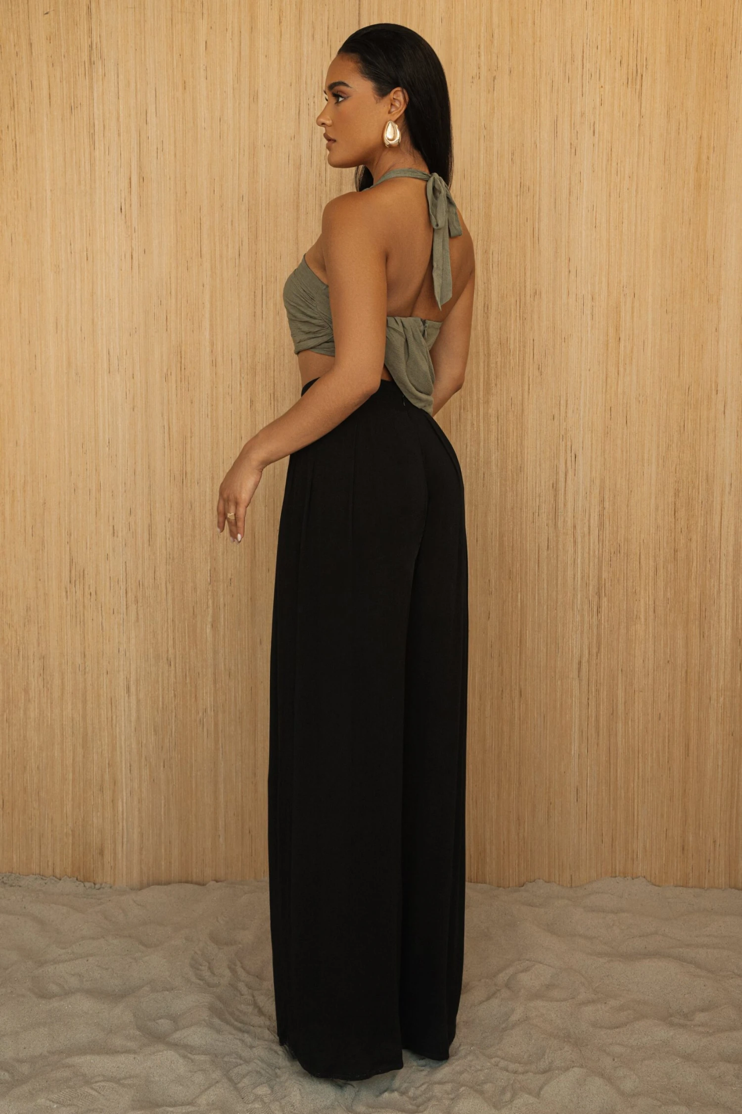 Introducing the new Olive Take A Seat Halter Top! A must have summer staple that takes your look from day to night effortlessly. This vacation ready halter top offers eye-catching detail with a tortoiseshell embellished neckline and stunning front drape design. Crafted in a soft and breathable fabric for fresh comfort. Pair with our
