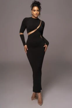 The Pecan Break Away Maxi Dress is at the top of our list this season. Crafted in smooth double lined fabric, our latest maxi exudes elegance at all angles with a classic mock neckline, long-sleeve arms, and side mesh panels starting from the underarm down to the hem detailing side cutouts. Complete with a detachable layered necklace in a gold-tone finish and a back slit hem. Double-lined. Stretchy.