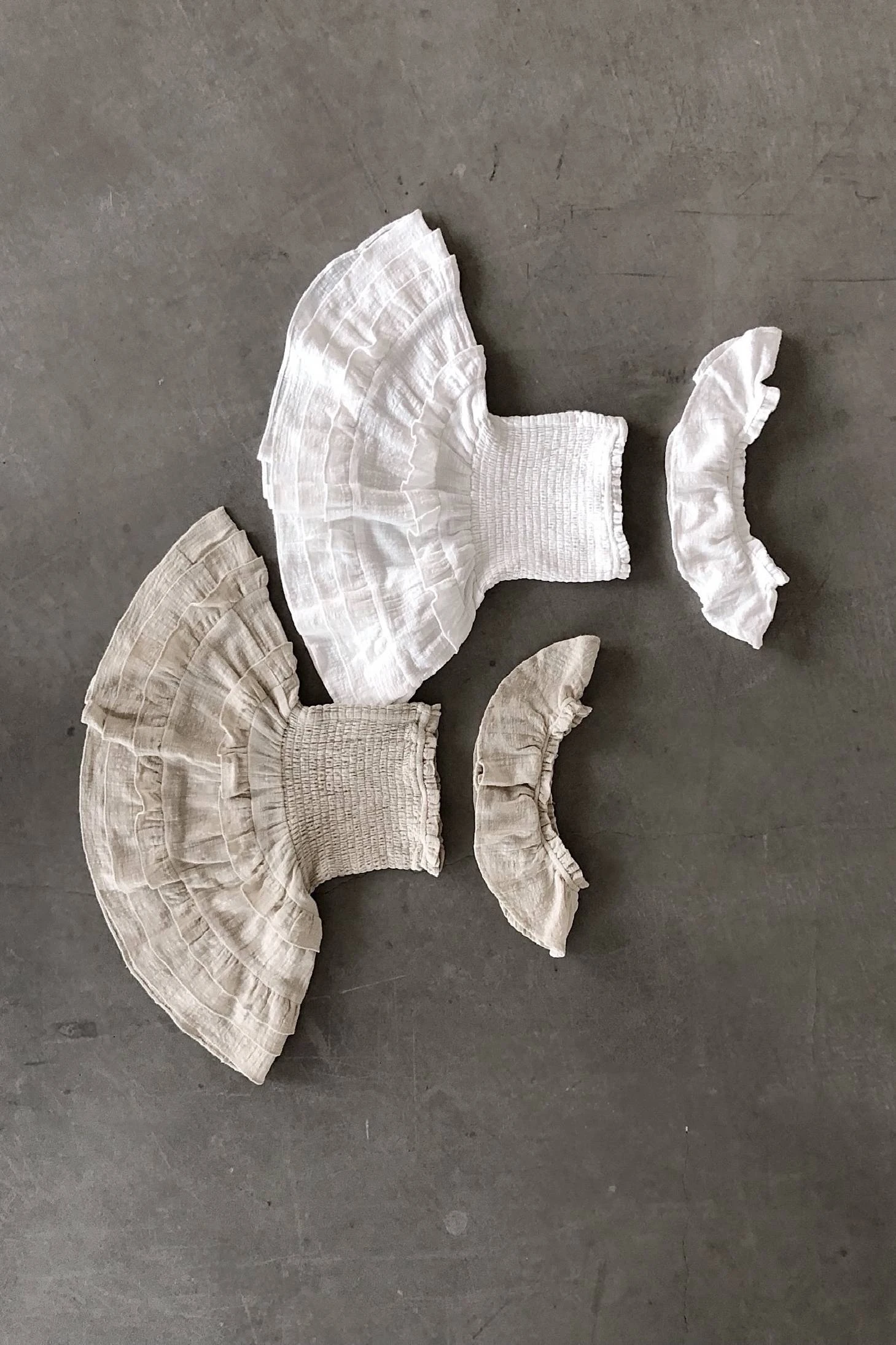 Mommy’s little fashionista is ready for the runway in our new White Emily Ruffled Skirt Set. This stunning two piece kid’s set is designed with lightweight cotton fabric for a breathable and fresh feeling. Featuring a dreamy off the shoulder crop top with an elastic strapless neckline, a ruffled design, and interior lining for comfort. The maxi skirt comes with a flattering smocked upper waist with charming ruffle tiers. Have a mommy and me moment with our matching
